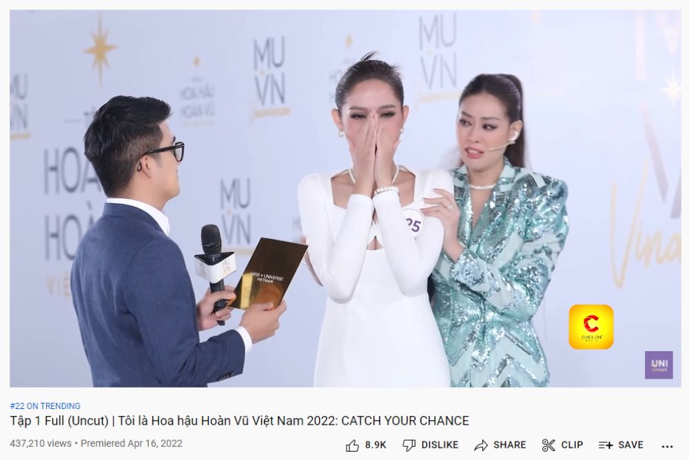 Vừa qua, tập 1 chương trình Tôi là Hoa hậu Hoàn vũ Việt Nam 2022 đã chính thức lên sóng. Khán giả không chỉ có thể thưởng thức những khoảnh khắc ấn tượng khi ngắm nhìn các nhan sắc đầy tự tin “bắn” tiếng Anh, thể hiện tốt kỹ năng mà còn cảm nhận được những câu chuyện nhân văn cảm xúc. Chính vì thế, chỉ sau 12 tiếng “trình làng”, chương trình đã lọt ngay top trending thịnh hành của YouTube.