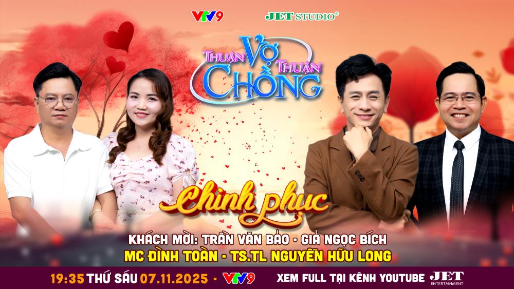 Thuận Vợ Thuận Chồng với câu chuyện “Chinh phục” của đôi vợ chồng Văn Bảo – Ngọc Bích sẽ phát sóng lúc 19:35, thứ Sáu ngày 07/11/2025 trên kênh VTV9. Chương trình do VTV9 phối hợp cùng Jet Studio thực hiện.
