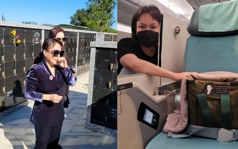 Việt Hương đặt hài cốt Phi Nhung trên ghế ngồi riêng, đưa cô về Mỹ với gia đình.