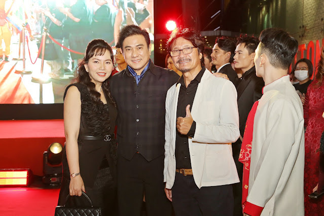 Ông trùm phim Bụi Đời Chợ Lớn thu hút sự chú ý từ khán giả khi sánh đôi cùng bà xã Uyên Phương trong buổi ra mắt phim điện ảnh mới tại TP.HCM. Cả hai vợ chồng diện trang phục sắc đen đơn giản nhưng nổi bật bởi nhan sắc trẻ đẹp trên thảm đỏ. Họ gặp từng đồng nghiệp thăm hỏi và chúc mừng những diễn viên tham gia vai diễn trong phim.