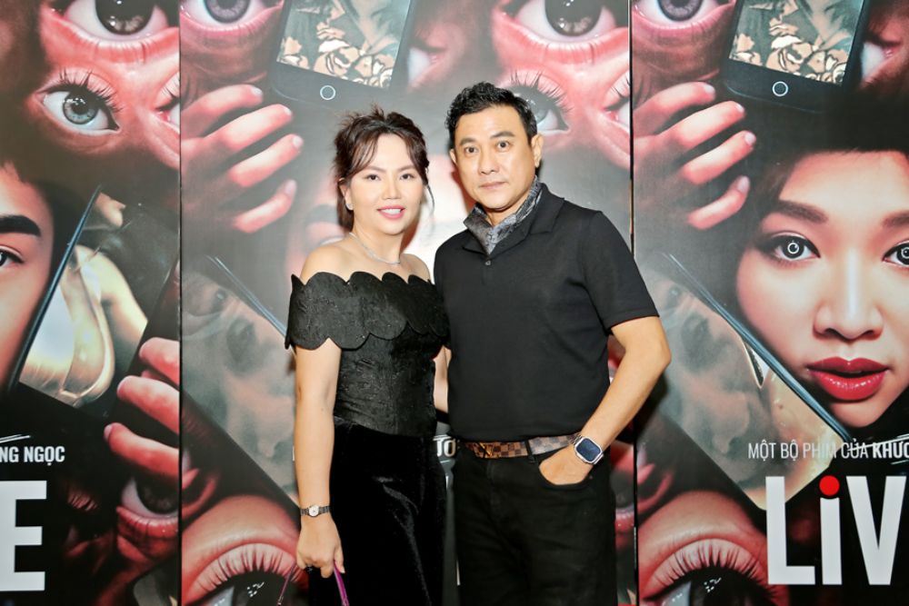 Diễn viên Hoàng Phúc cùng bà xã Uyên Phương hạnh phúc tay trong tay cùng nhau bước trên thảm đỏ của phim “Live – #PhátTrựcTiếp”. Ông trùm vai phản diện mặc ton-sur-ton đen với bà xã Uyên Phương dự sự kiện điện ảnh quy tụ dàn sao Việt tối qua ngày 21/9 tại Lotte Cinema quận 7.