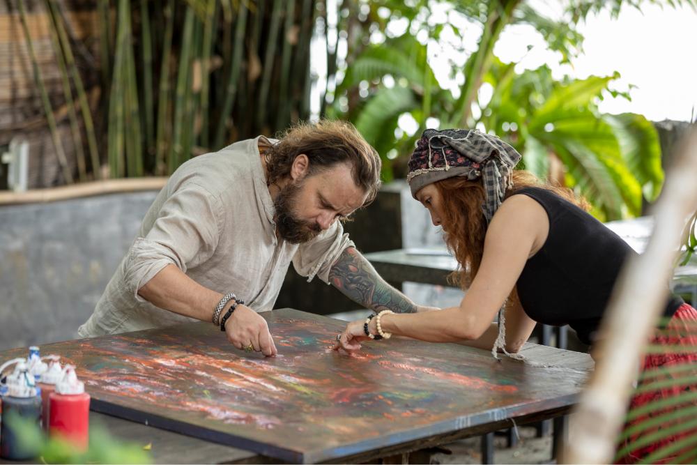 Hai người – hai tâm thức đối nghịch: một người Á Đông giàu cảm tính, một người châu Âu lý trí; một người hướng đến sự buông lỏng, một người tìm sự khẳng định. Nhưng cũng chính trong đối nghịch đó, họ lại tìm thấy sự đồng điệu. Họ cùng sống, cùng sáng tác, và thậm chí có những bức tranh vẽ chung. Trên cùng một tấm toan, sự mơ hồ và sự minh định hòa quyện, không triệt tiêu nhau mà bổ sung cho nhau – như hai dòng chảy song hành.